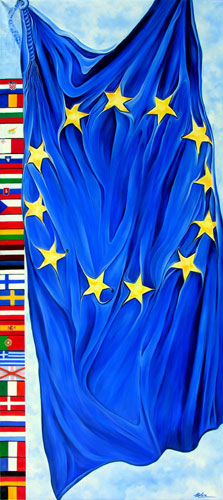Nr. 2006 | L’unión fait la force – Europaflagge | Acryl auf Leinwand | 200 x 90 cm | letzte Aktualisierung 2020